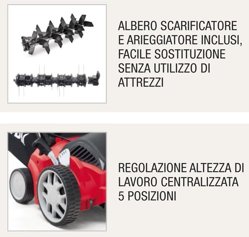 La larghezza di lavoro è pari a 30 cm e il motore elettrico da 1200 Watt assicura la potenza necessaria per il nostro giardino.