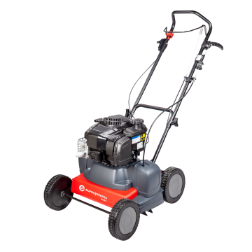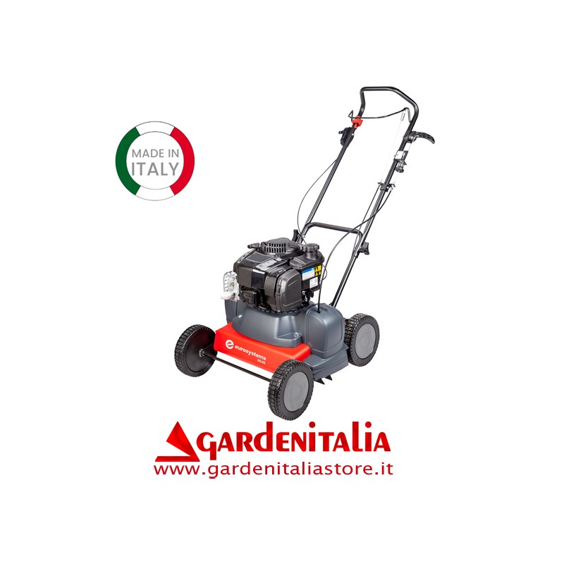 Una nuova concezione di scarificatore con trasmissione a cinghia brevettata. L'utilizzo di motori ad albero verticale lo colloca in una fascia di prezzi al pubblico molto competitiva, senza rinunciare ad un robusto telaio in acciaio, strutturato in modo da facilitare lo scarico posteriore dell'erba.
