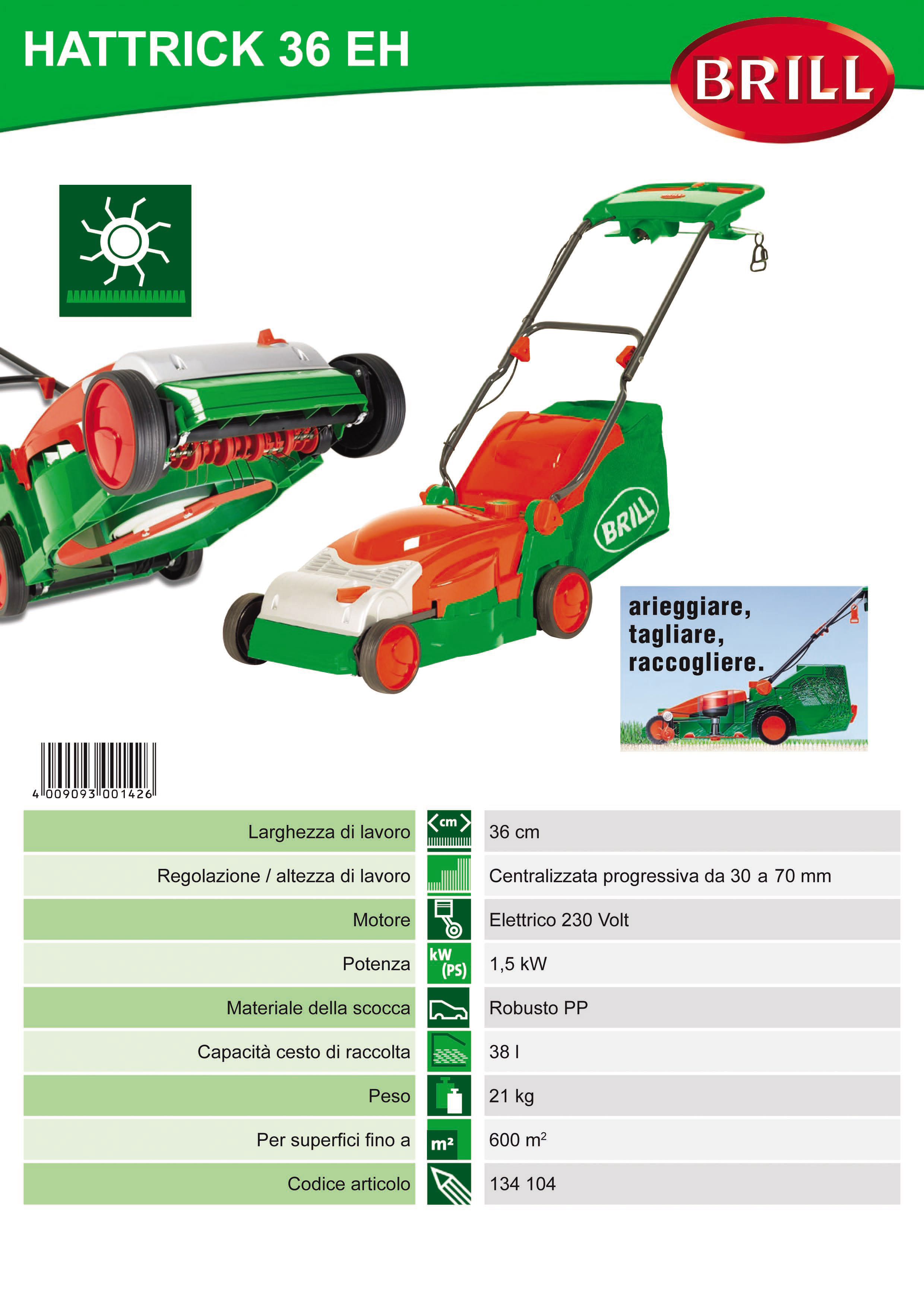 Tagliaerba Elettrico/ Arieggiatore BRILL mod. HATTRICK 36 EH - 1500 Watt