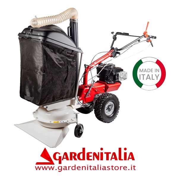 La multi attrezzo P70 EVO in questa versione è dotata di aspiratore/soffiatore. In questa configurazione l’accessorio viene montato anteriormente. L’accessorio è dotato di una grande capacità di raccolta (185 lt) con sistema di scarico rapido per gestire ampie superifici. La macchina è dotata di 3 velocità di lavoro e 2 velocità di retromarcia. La larghezza di lavoro della bocca di aspirazione è pari a 78 cm. L’aspirafoglie è dotato di soffiatore grazie al tubo indipendente con relativo comando di inversione della ventola