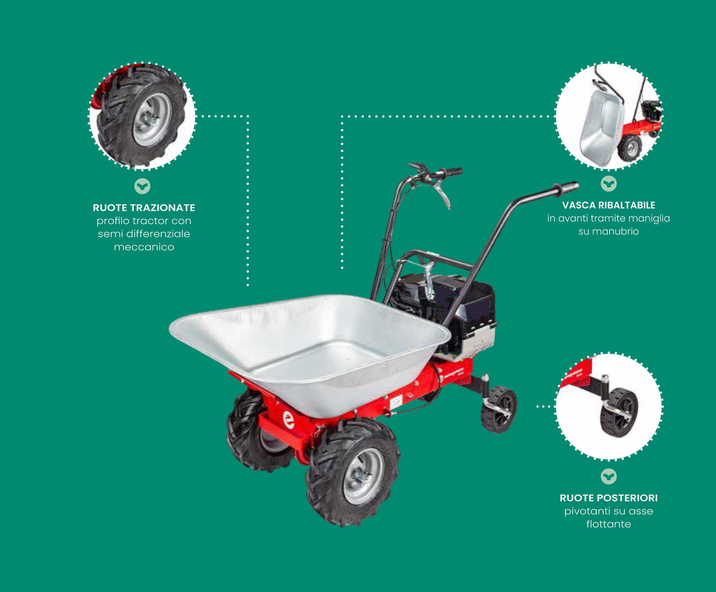 Robuste e facili da usare. Le motocarriole Eurosystems della linea Carry sono create per alleggerire la fatica e rendere il lavoro meno faticoso nel trasporto di materiali pesanti e voluminosi.