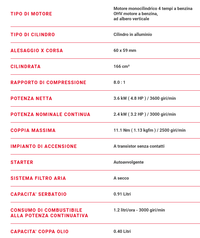 Motore 4 tempi a benzina HONDA GCV 170 da 166 cc – 3,6 kW