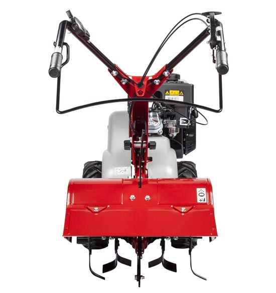 Sono presenti tutti i comandi necessari all’uso senza dover staccare le mani: la leva inserimento attrezzi, la leva per la retromarcia e il comando gas del motore