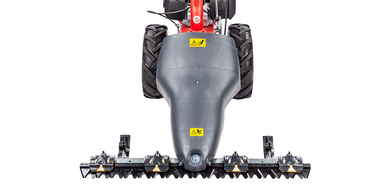 La multi attrezzo P55 EVO in questa versione è dotata di barra falciante (con movimento bilama) per essere una robusta e pratica motofalciatrice. In questa configurazione l’accessorio viene montato anteriormente. La macchina è dotata di 1 velocità di lavoro e 1 retromarcia. La larghezza di lavoro della barra falciante è pari a 87 cm (con movimento doppia lama, dato da lama inferiore e superiore oscillanti). L’altezza di taglio dell’erba è regolabile da un minimo di 1,5 cm ad un massimo di 4,7cm.