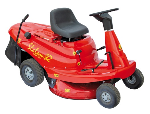 Trattorino Rider Eurosystems mod. SLALOM 82 che monta un piatto di taglio con tecnologia americana che consente una rasatura del prato perfetta senza raccolta,sminuzzando e ri-triturando, l’erba che si perde nel terreno senza creare infeltrimento del manto erboso.