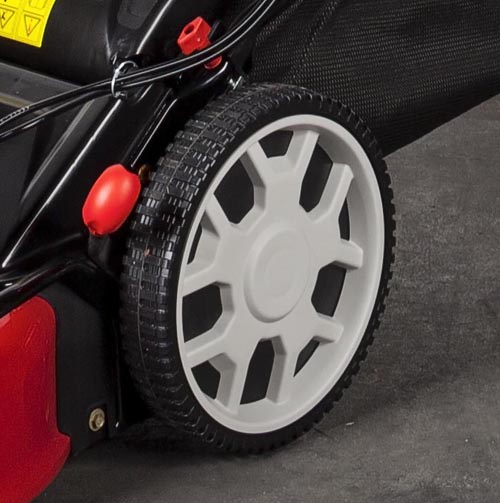 Le ruote posteriori di grandi dimensioni (280 mm di diametro) sono perfette per ogni tipo di prato e garantisco una perfetta aderenza e manovrabilità